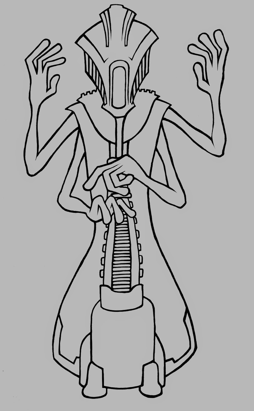 So, my eldest boy asked me to do a drawing for him. He loved watching me play the 'XCOM : Enemy Unknown;' video game ( which I probably shouldn't have let him watch - it is a little gory perhaps ), and he REALLY liked the Ethereal aliens. He wanted me to draw him an Ethereal Commander with the 'Alien Device' ( a thing you steal from the aliens in the game - you need it to win ). It was VERY important that it be coloured.